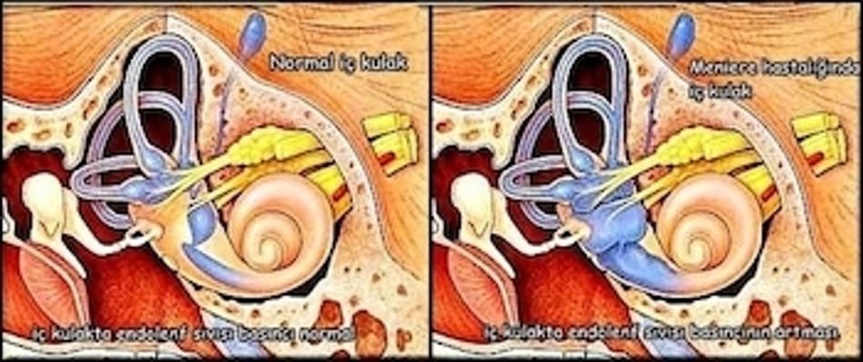 Meniere hastalığı, iç kulakta sıvı birikmesi (endolenfatik hidrops) sonucu baş dönmesi (vertigo), işitme kaybı, kulak çınlaması (tinnitus) ve kulakta dolgunluk hissi ile karakterize bir hastalıktır. Genellikle tek kulağı etkiler, ancak zamanla diğer kulağı da etkileyebilir. Meniere hastalığı idiopatik, semptomatik endolenfatik hidrops olarak bilinen bir iç kulak hastalığıdır. 20 dk – 12 saat süren 2 veya daha fazla sayıda spontan olarak gelişen nöbetler halinde gelen şiddetli vertigo (baş dönmesi) atakları mevcuttur.